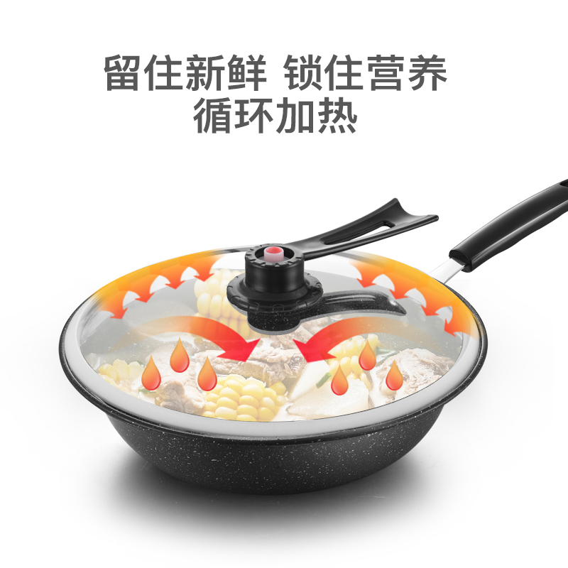炒鍋是我國(guó)一種烹飪東西,為鍋的一種,特征是頂部開(kāi)口大,圓底,因?yàn)槲覈?guó)南邊食物多以小炒為主,故炒鍋規(guī)劃成有手柄以便當(dāng)拋炒。麥飯石微壓炒鍋首要用作煎或炒食物,但也能夠用作蒸、燉、炸等其他不同的烹飪方法。炒鍋是我國(guó)及東南亞的首要煮食東西。