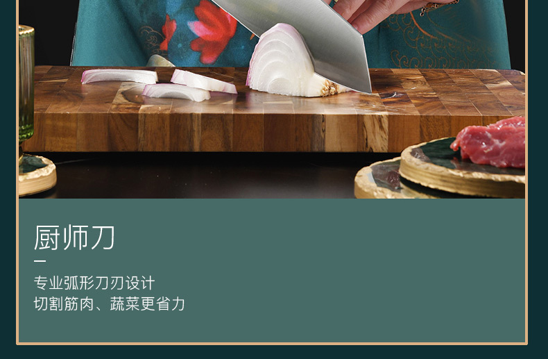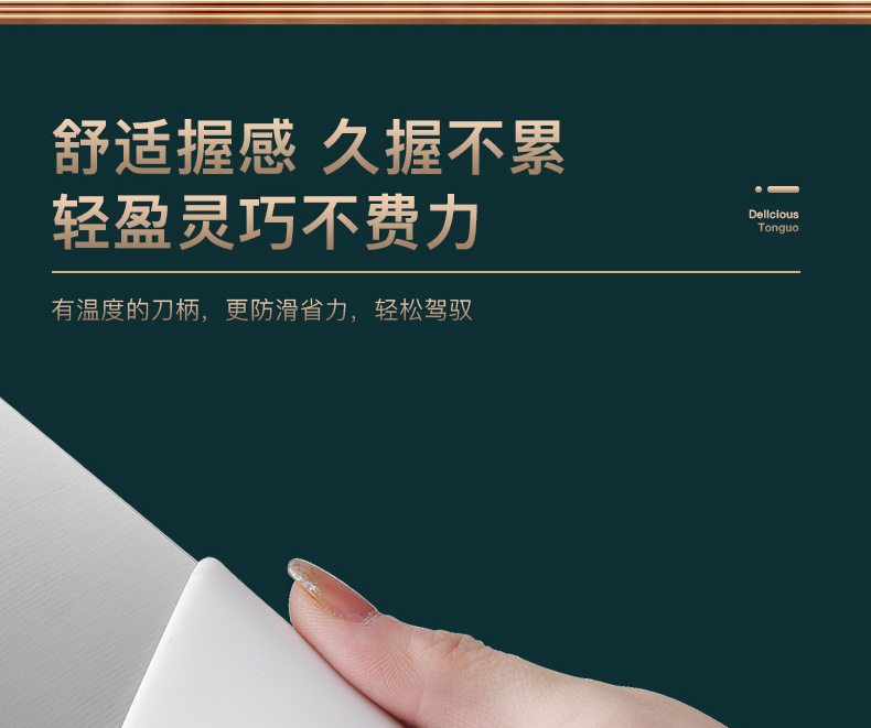 3.專刀專享切出主廚儀式感,冷段工藝增強鋼材韌性,耐磨抗腐蝕,手柄采用人體工學(xué)設(shè)計,握感舒適久握不累。