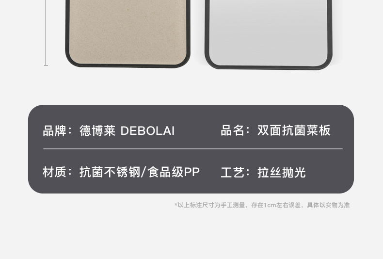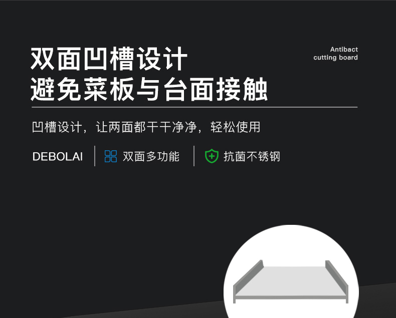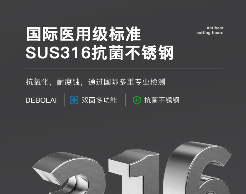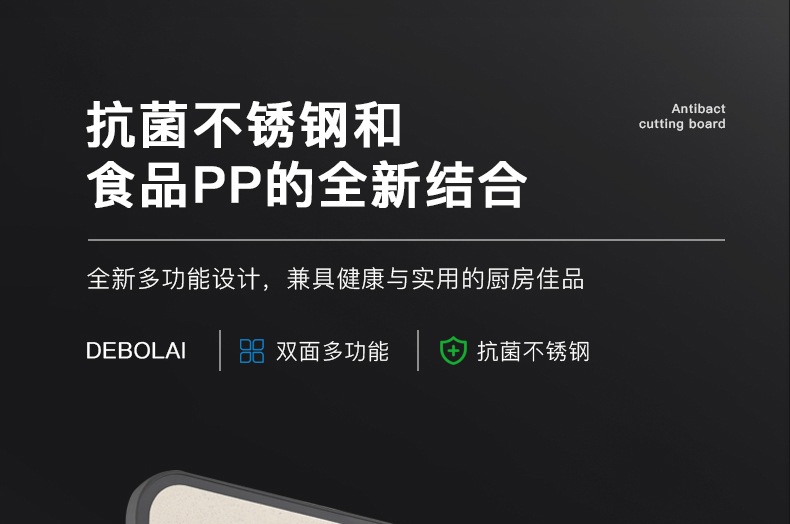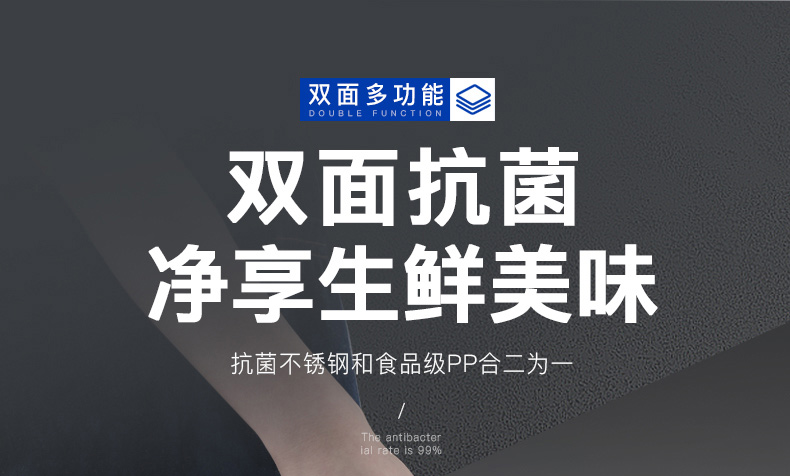 雙面菜板的出現(xiàn),解決了傳統(tǒng)菜板威脅健康的問(wèn)題。雙面菜板其優(yōu)點(diǎn)有重量輕、吸水性小、不易受潮開(kāi)裂、霉變、使用壽命長(zhǎng)、優(yōu)異的抗菌效果等。雙面菜板采用抗菌不銹鋼和食品級(jí)PP二合一,制成的雙面菜板起到持久性抗菌抗病毒效能。源自德國(guó)進(jìn)口的食品級(jí)PP材料無(wú)異味、剁骨不傷刀。即使菜板在使用過(guò)程中有一定的磨損,抗菌效果依然存在,為雙面菜板提供抗菌保護(hù),也為家人的健康保駕護(hù)航。
