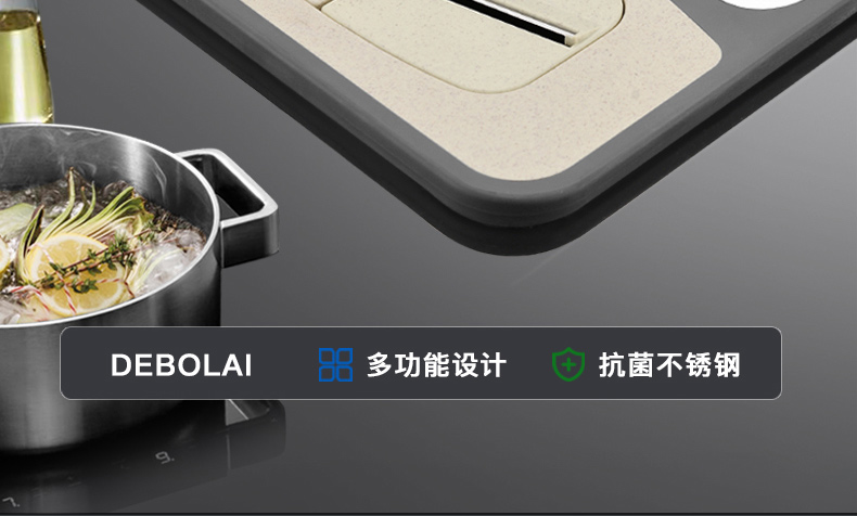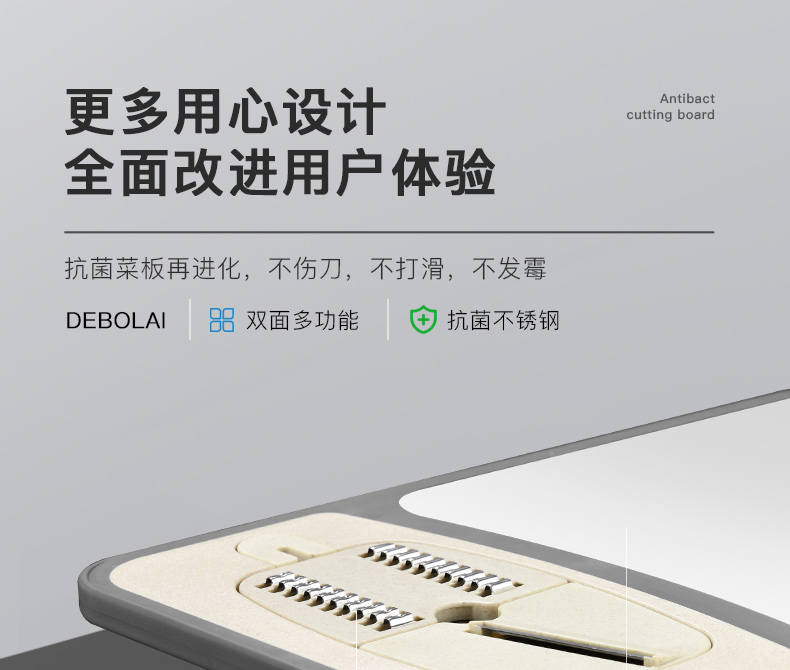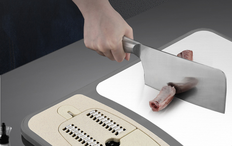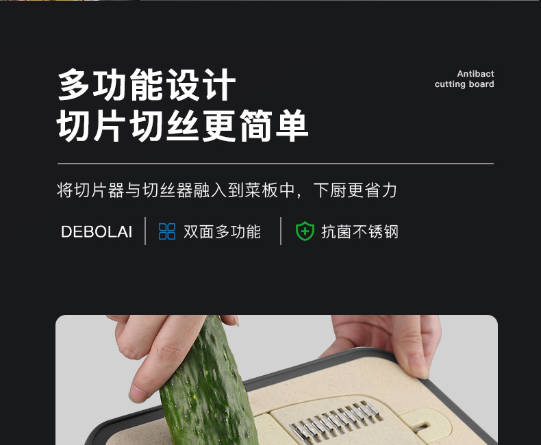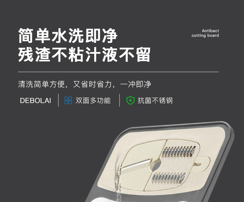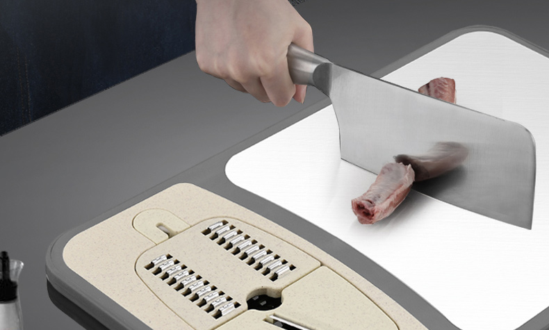 私家開(kāi)模獨(dú)特設(shè)計(jì),多功能菜板可削皮,可切絲,可磨刀,多種功能集合于一身。