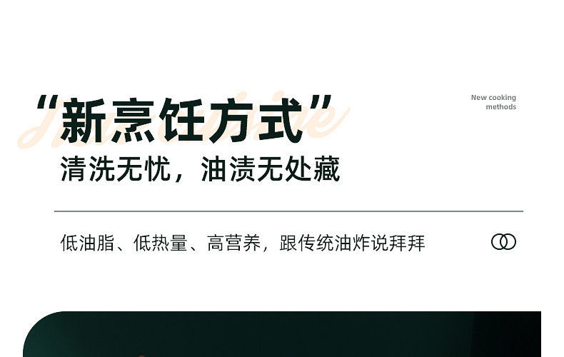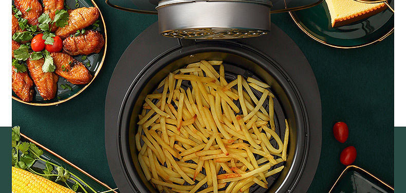 3、空氣炸鍋不需要像傳統(tǒng)油炸食品那樣把食物放到油里煎炸,而且食物本身的油也會滴到炸鍋里,最高可降低80%的油脂。