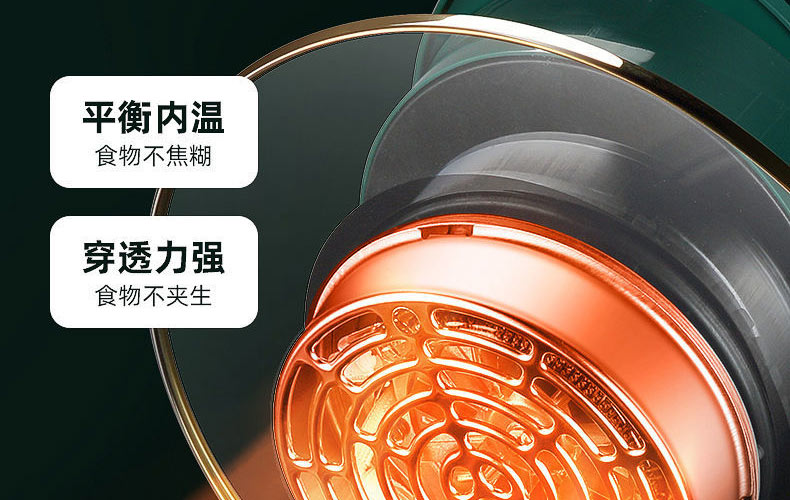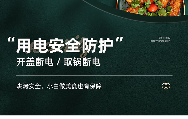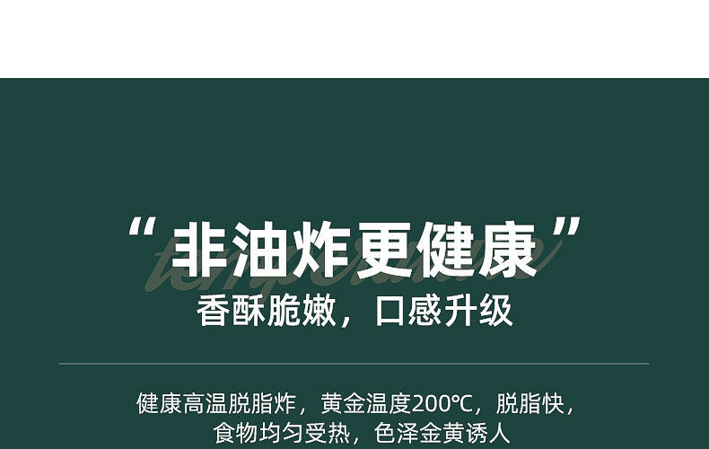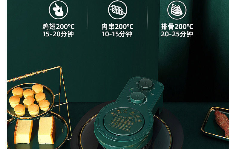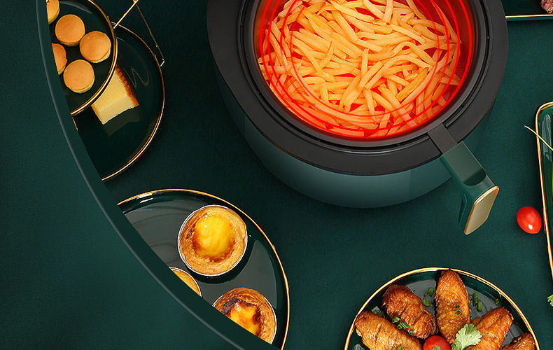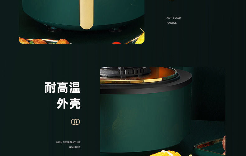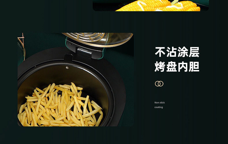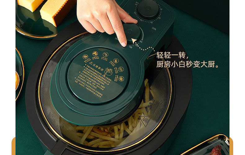 4、空氣炸鍋有最高達200度的恒溫裝置,是要設(shè)置好時間就不會產(chǎn)生傳統(tǒng)油炸過因為油溫太高產(chǎn)生食物焦糊甚至著火的情況。