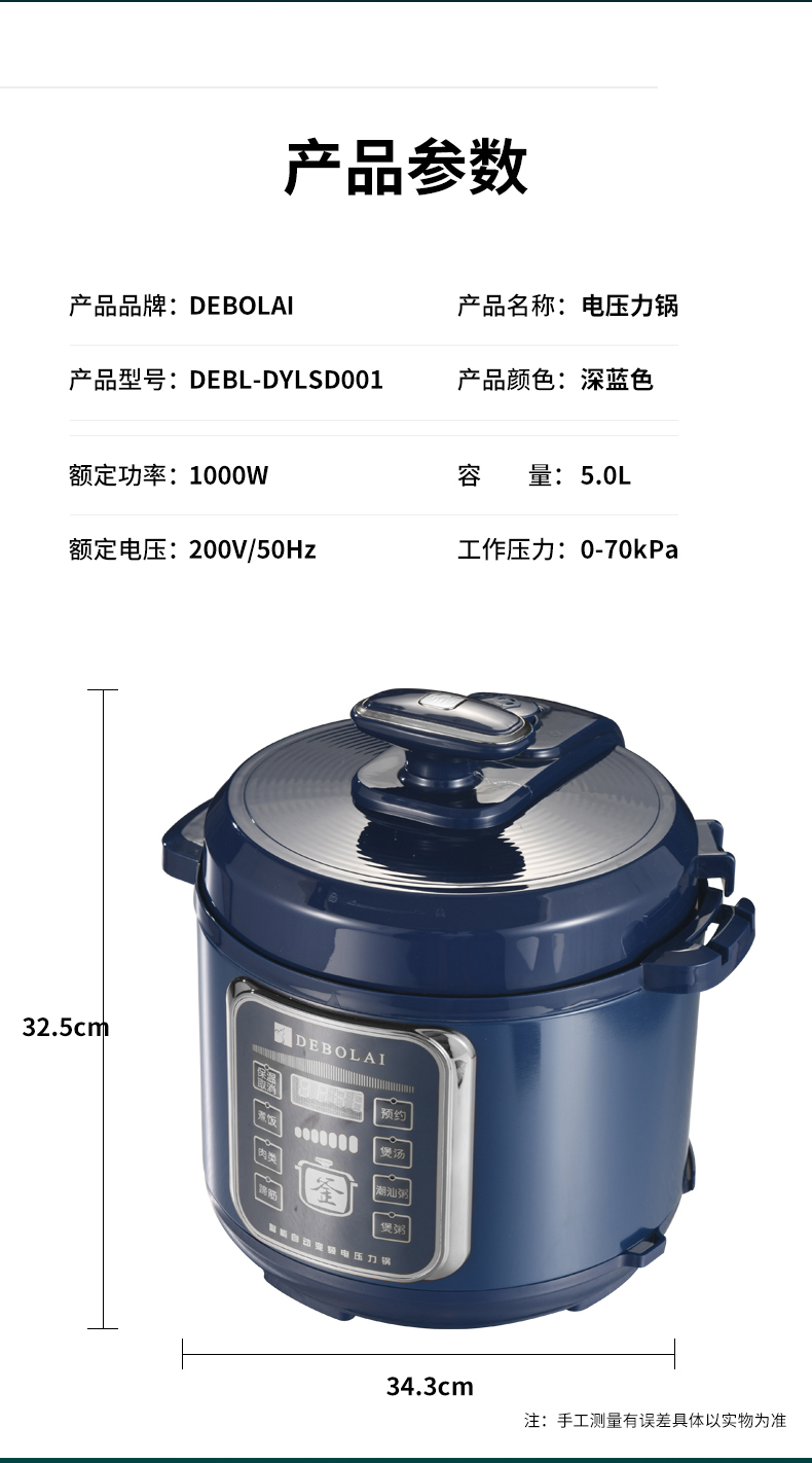 產(chǎn)品名稱:德博萊高壓鍋(藍(lán)雙膽)