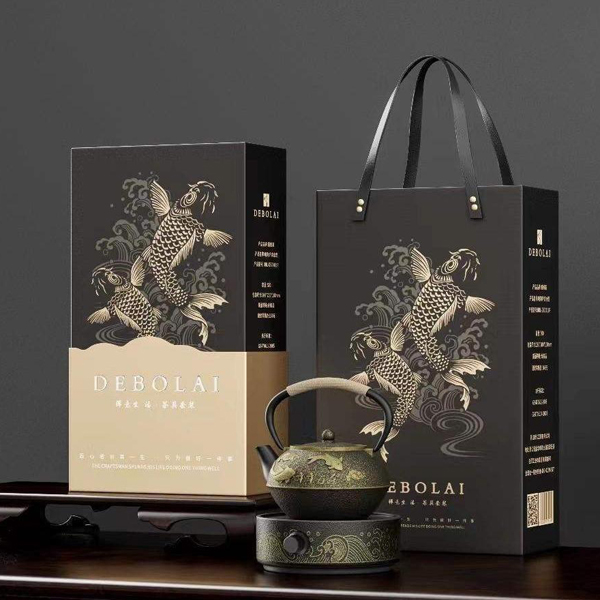 1.日本鐵壺技術(shù),年年有魚鎏金圖案,寓意吉祥。