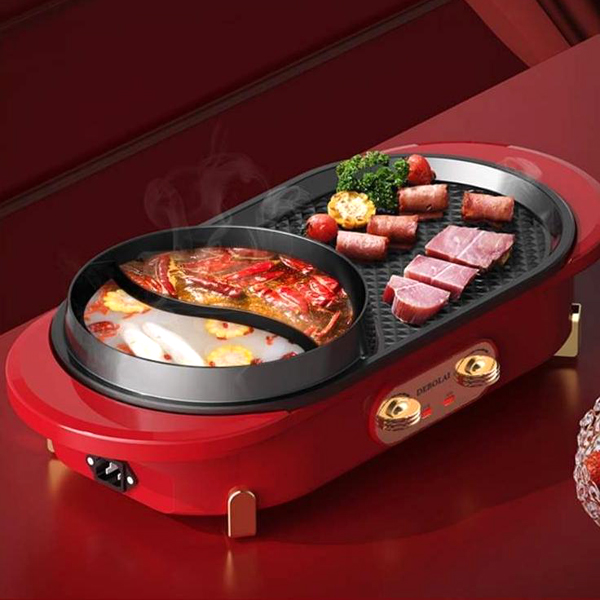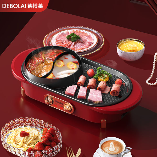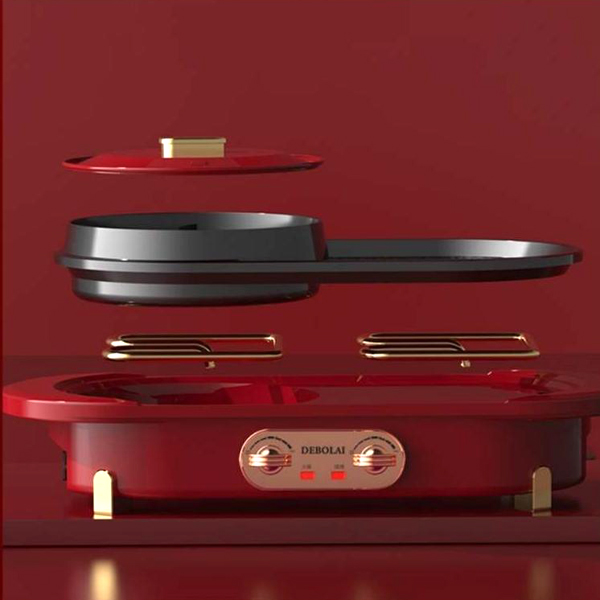 1、輕奢料理生活儀式,只能涮烤盤,雙管分區(qū)加熱雙旋扭電子溫控,清油少煙易清潔。